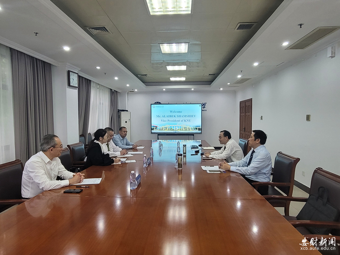 Alaibek Shamshiev对我校的热情接待致以诚挚谢意,希望双方进一步加强合作交流,以务实高效的行动推动两校之间教师互访、学生交流和科研合作。会上,Alaibek Shamshiev正式发出邀请,期待安徽财经大学参加朱苏普・巴萨拉根国立大学建校100周年庆祝活动,进一步增进两校友谊与合作。